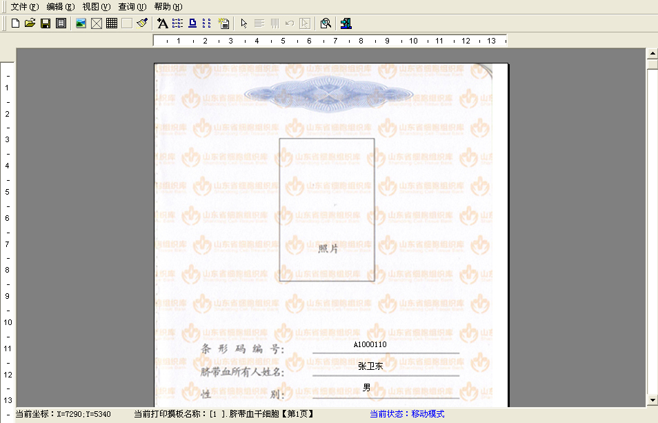 臍帶幹細胞存儲證書(shū)打印設計(jì)器(qì)