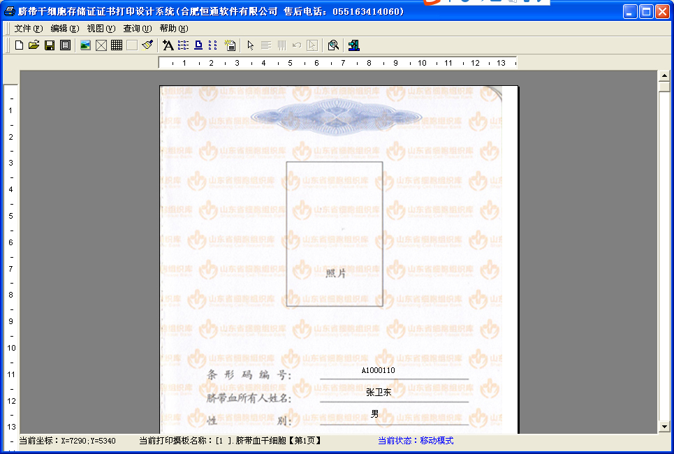 軟件名稱:臍帶幹細胞存儲證書(shū)打印設計(jì)器(qì)